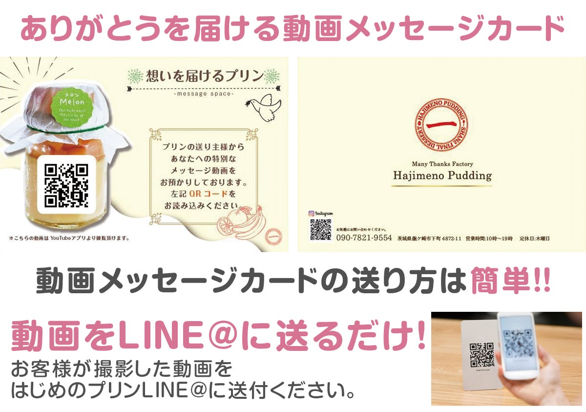 そこでお客様から頂いた動画をプリンと一緒にQRコードの付いた手紙を同梱し