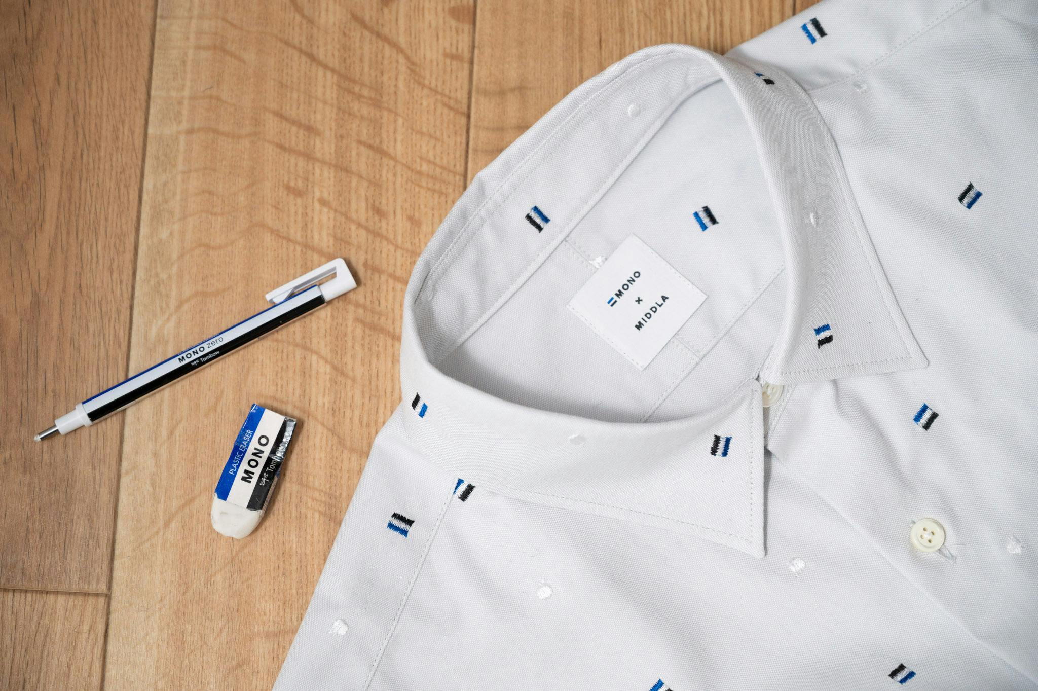 MONOxMIDDLAのシャツ生地(ストライプ生地と刺繍柄のベース生地)は全て国内生産です。