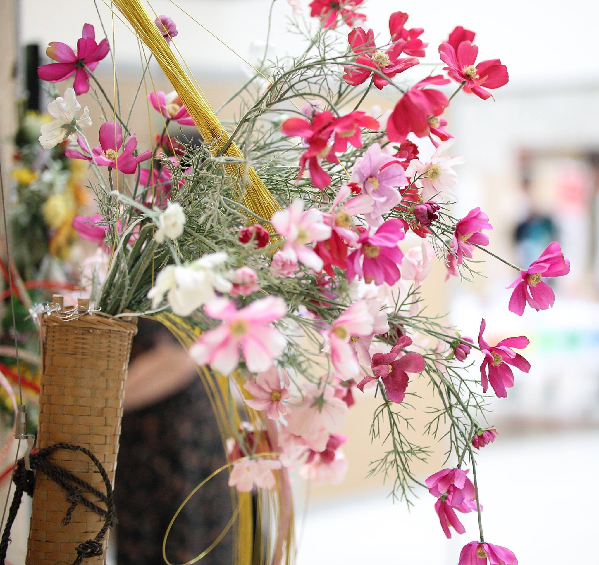 材料はプリザーブドフラワーを始め、播州織等で制作したアーティフィシャルフラワーや自身で制作したアンティークフラワーが入ります。