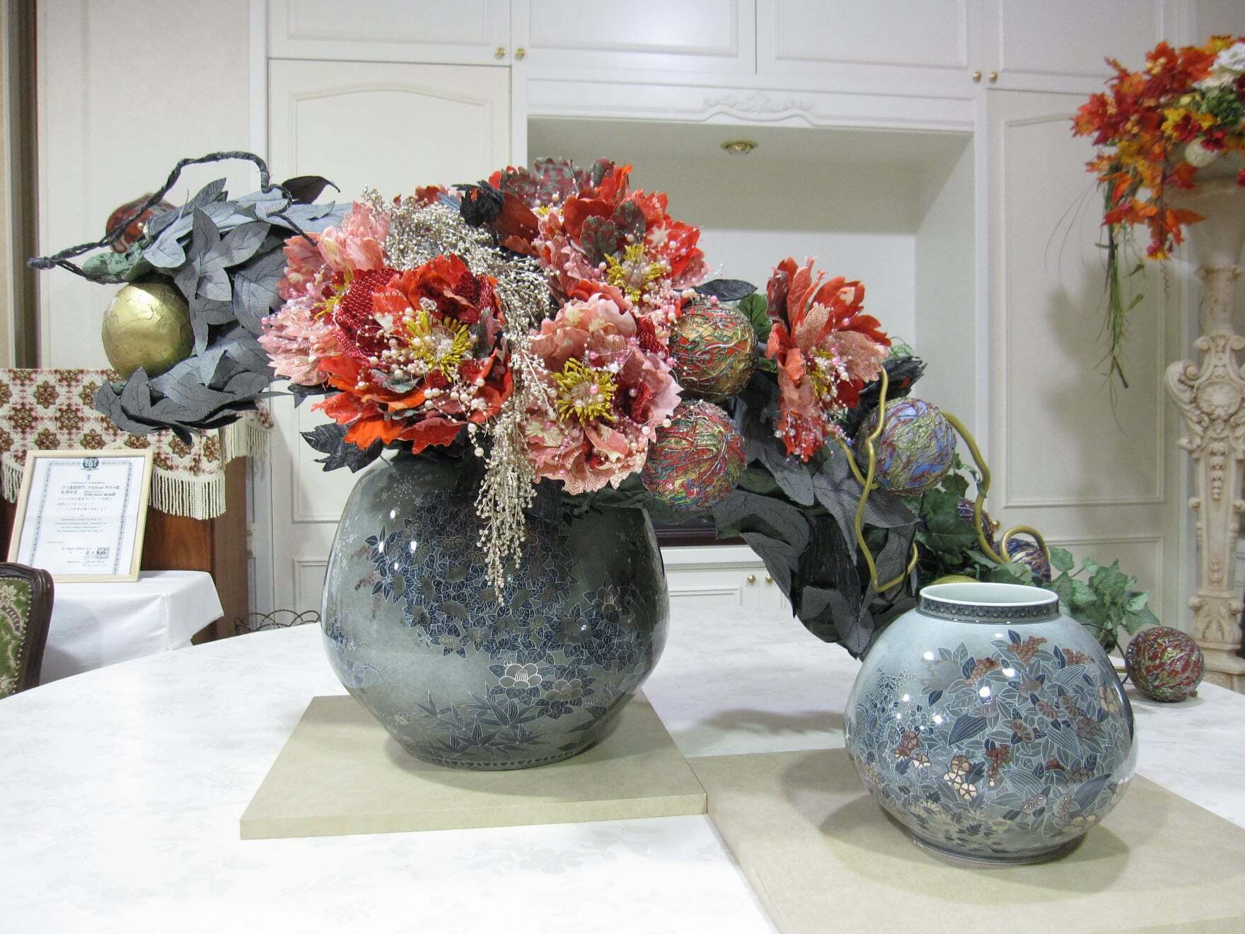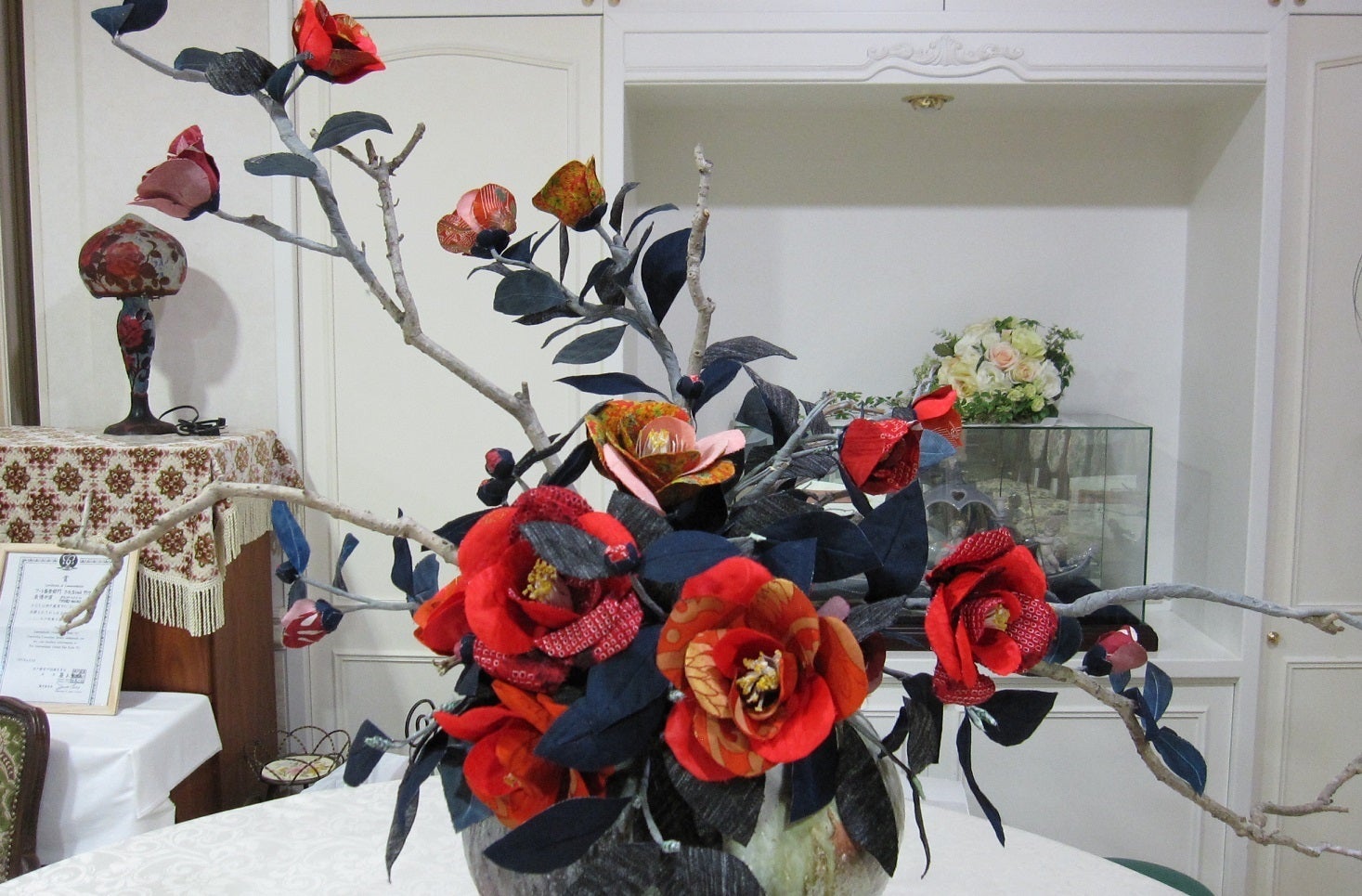 今後は陶芸家、人間国宝十四代今泉今右衛門先生(2020年10月17日)、細川護光先生(2020年11月20日)等の作品に芸術化されたアートフィシャルフラワーを播州織で制作して、花の世界を芸術の世界へと広げていく活動を行う。