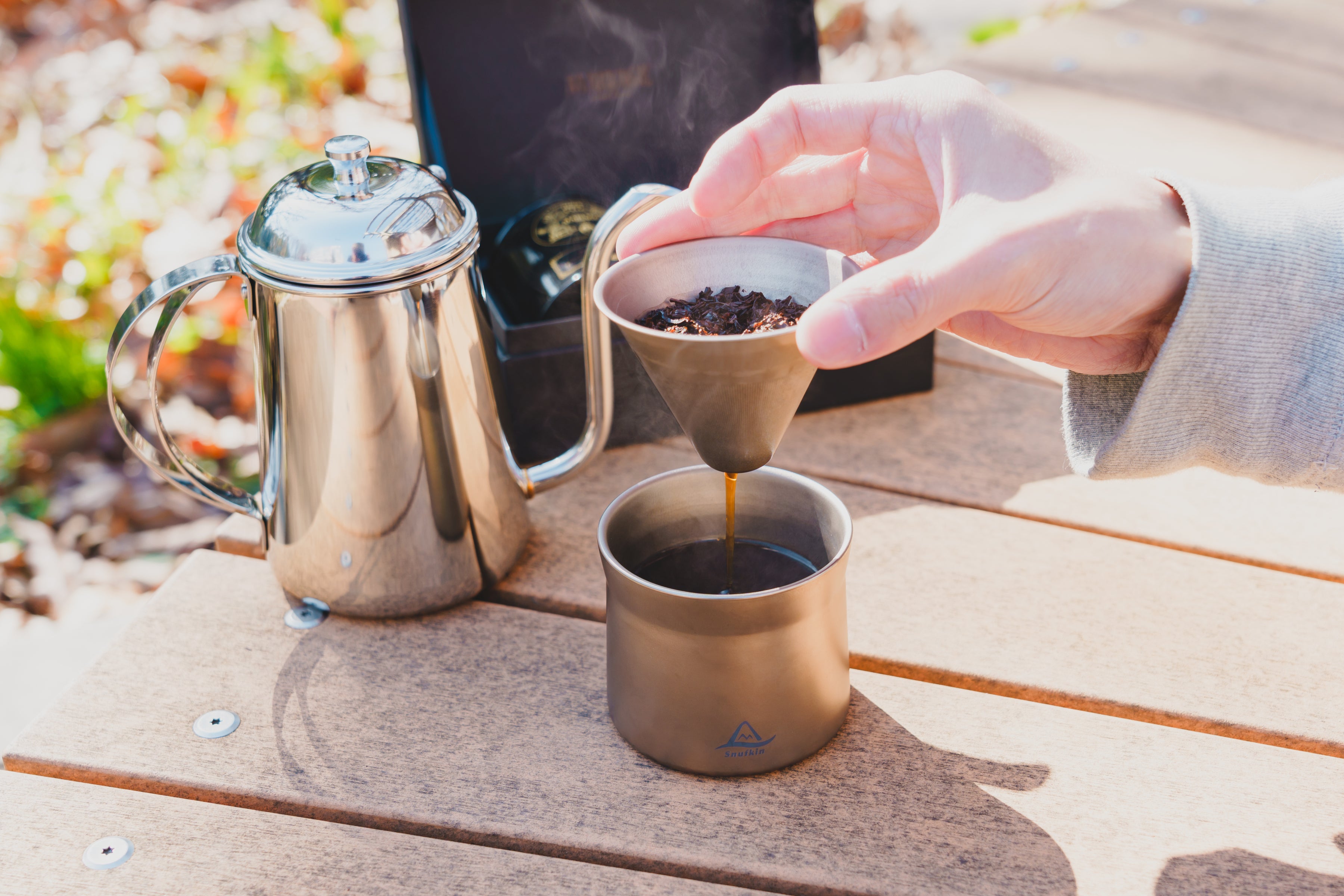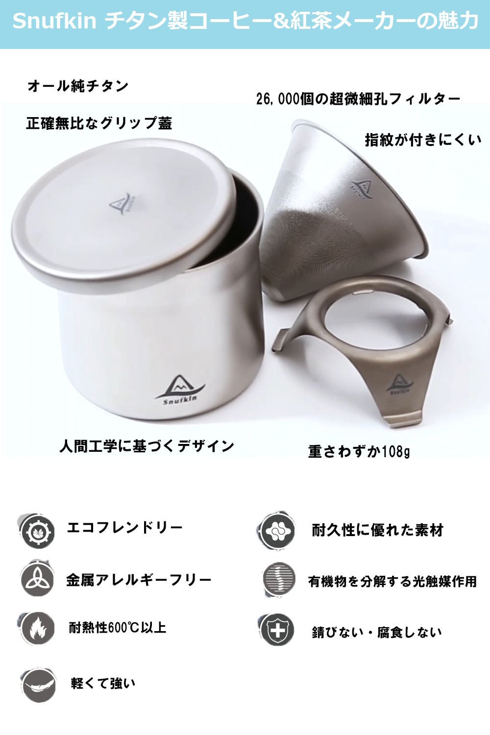 素材:(純チタン)マグカップ、フィルター、フタ、3脚