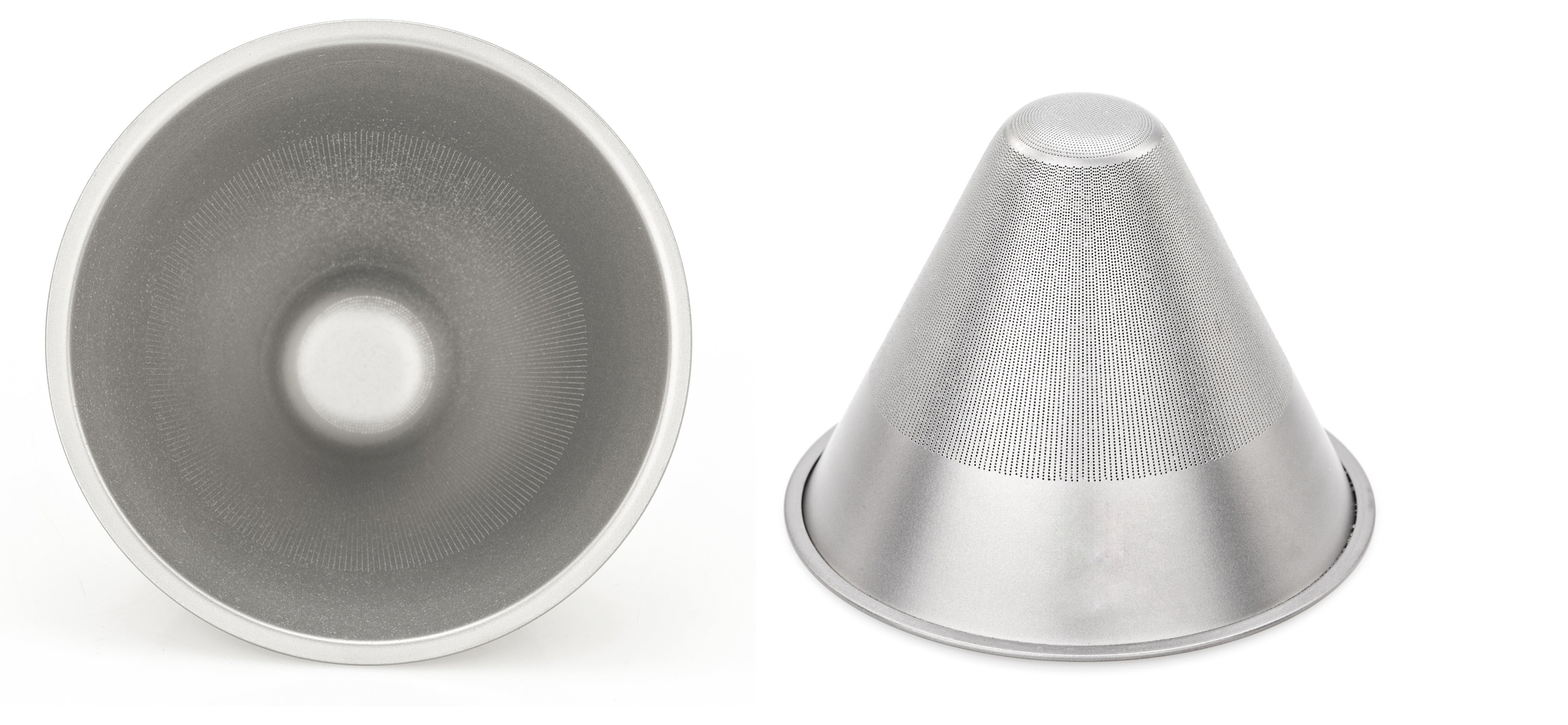 フィルターの内側から外側に向かって孔が広がっている事により、
