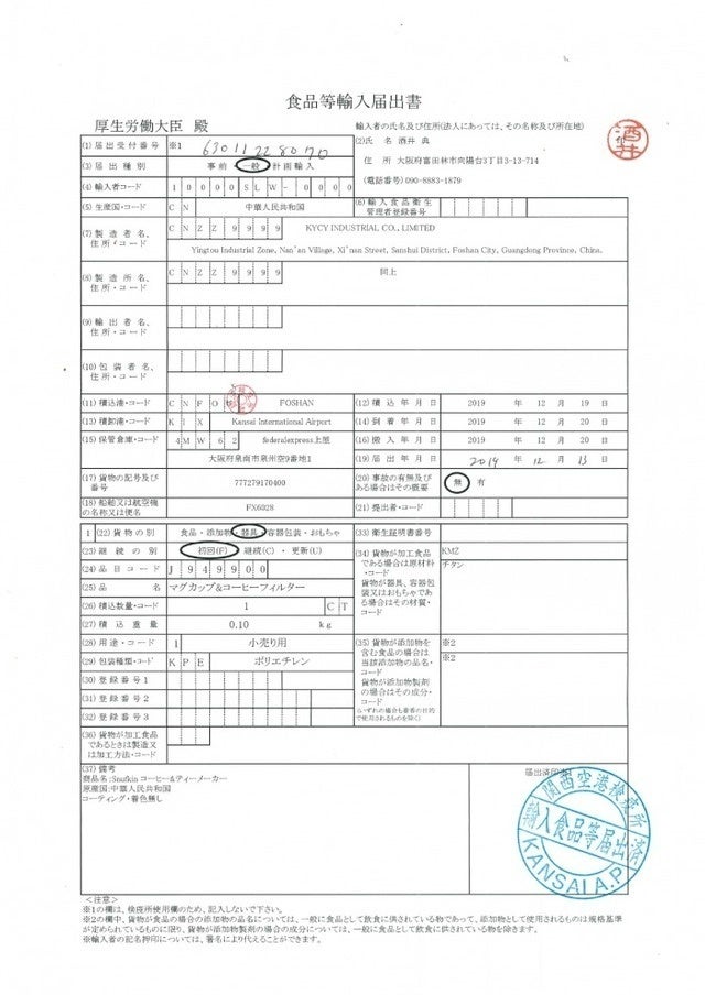 安心してご利用頂くために日本国内にて食品衛生法に基づく承認を頂いております