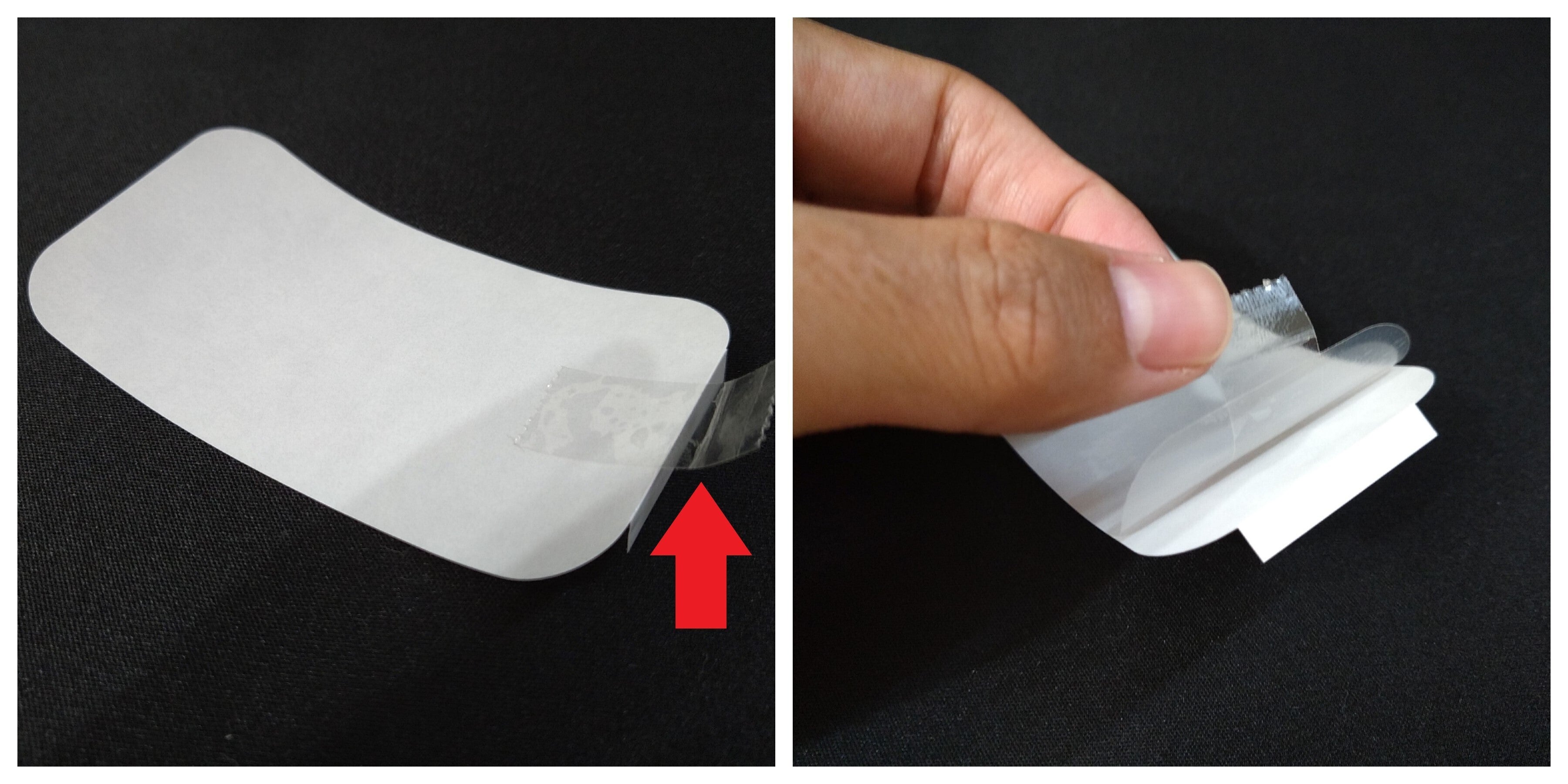 ベースフィルムが取り出しにくい場合、絶対に指紋を付けたくない等の場合は、セロハンテープを用いて剥がすことをおすすめします。(ベースフィルムが破れたりしない様に、ゆっくりと剥がしてください)