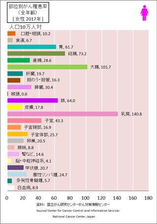 女性特有のがんとして、乳がん、子宮がん、卵巣がんがあります。特に乳がんは罹患率が高く、30代から増加する傾向にあります。