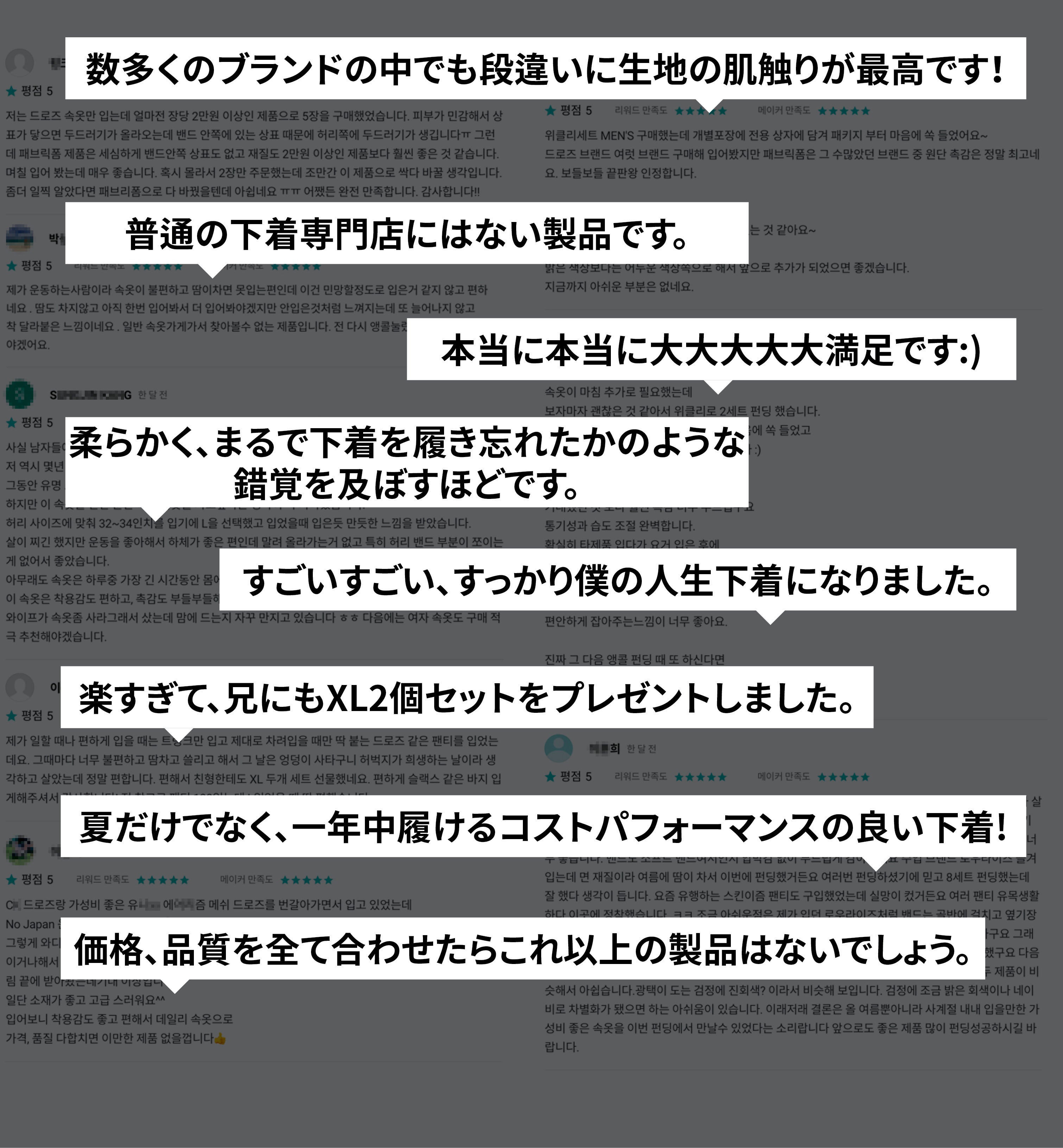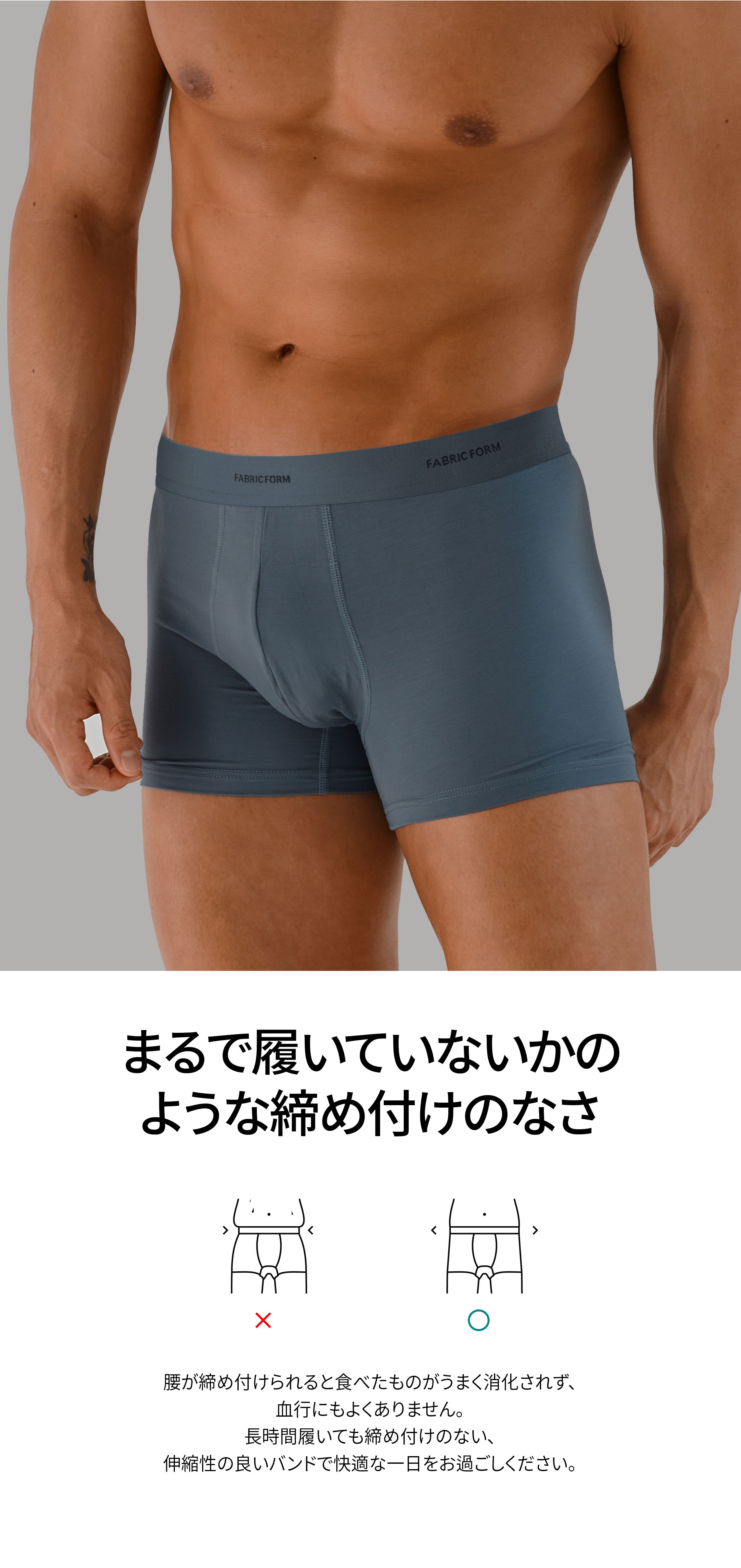 「いい製品とは何か」これは製品デザインをする人なら誰もが持っている悩みです。デザイン、実用性、品質、コストパフォーマンスすべてが調和してはじめて良い製品になると思います。日常には欠かせない下着。その重要性を再認識し、ただの消耗品ではなく、必需品ということを念頭に製品を開発を始め、この4年間、数多くのテストを経て、体に最もフィットしつつ、環境にやさしい素材で作られた機能性抜群の生地とバンドを仕上げました。