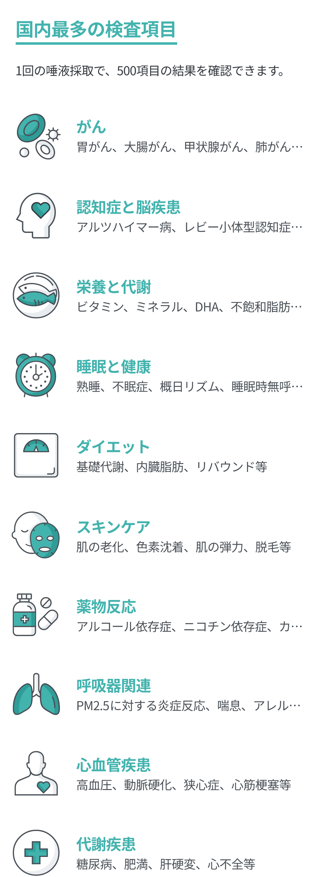 本遺伝子検査は医療行為に該当しないものであり、検査結果は診断ではなく、医師の診断内容や処方箋を置き換えるものではありません。