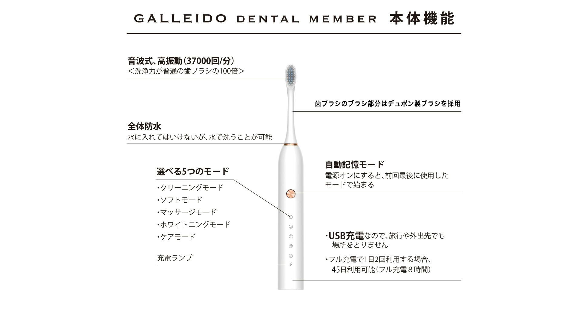 電動歯ブラシ本体の性能は、電動歯ブラシのサブスクリプションGALLEIDO DENTAL MEMBERで使われている電動歯ブラシと同じになります。また、商品送付後1年間は保証となります。