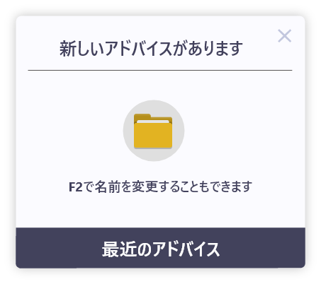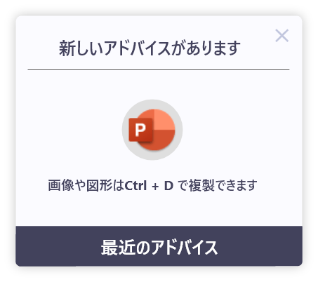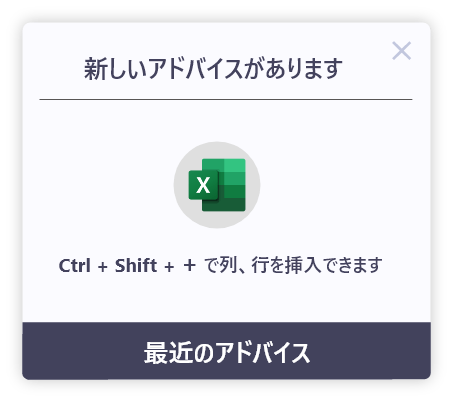 非効率な操作をしていると、画面上にアドバイスを表示します