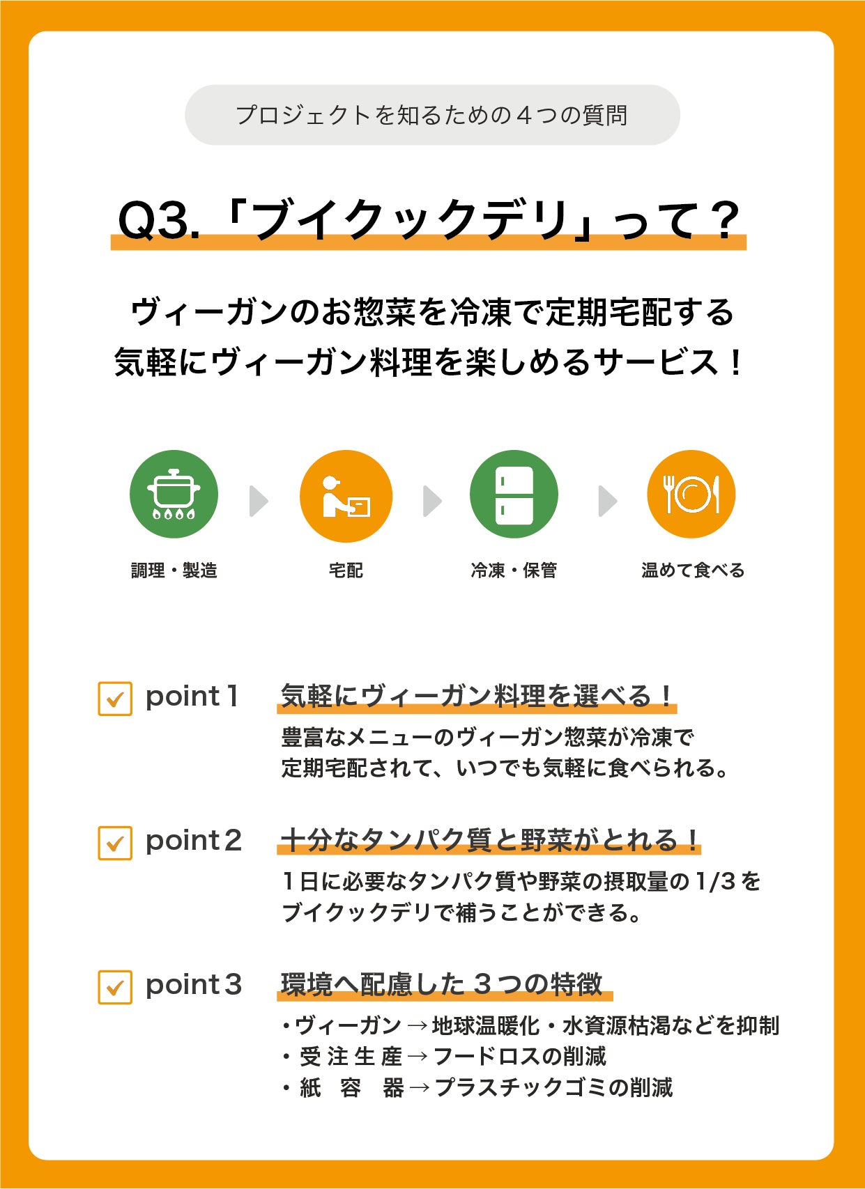 2つめは、まだこのプロジェクトを知らない方に知ってもらえるよう、SNSやLINEにてシェアしていただけると助かります。多くの人にブイクックデリを広げられるよう、ご協力お願いいたします。