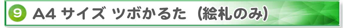 大きな絵札でツボかるたを楽しみたいという方のために、絵札の表面のみA4サイズに印刷をし、ラミネート加工(150μmの厚手のものでラミネートをします)をしたものをご用意しました。