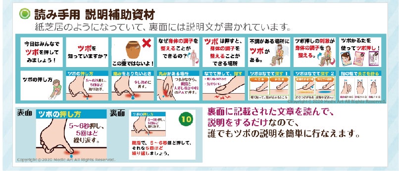 また、読み手が取り手の方に説明をしやすくなる、わかりやすいツボ押しの説明用補助資材(A4サイズ 17枚)も別途、付けます。