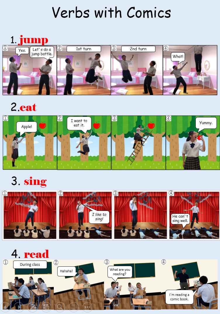 2,文章を読んで、ストーリーを理解し本を読む楽しさを知ってもらうための四コマ漫画風のもの⇩