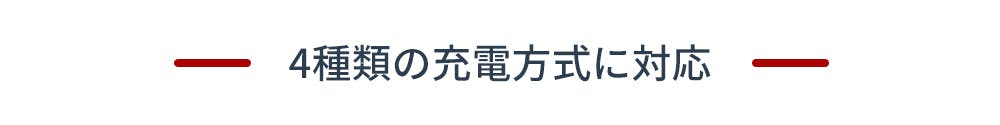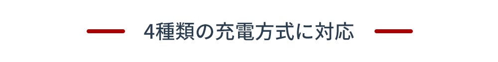 充電方法には、AC充電、ソーラー充電、カー充電、発電機充電の4つの方法があり、充電中にデバイスへ給電することも可能です。 家庭用コンセントからのAC充電は最短3.75時間ほどでフル充電になります。ソーラー充電は、12Vから28Vの電圧範囲に対応しており最大200Wまで可能です。 ソーラーからの不安定な電気も内蔵するMPPT回路によって効率よく充電できます。 ソーラー充電だけだと不安な屋外での充電の備えとして、製品同梱のカーチャージケーブルを使えば運転中にも充電可能です。