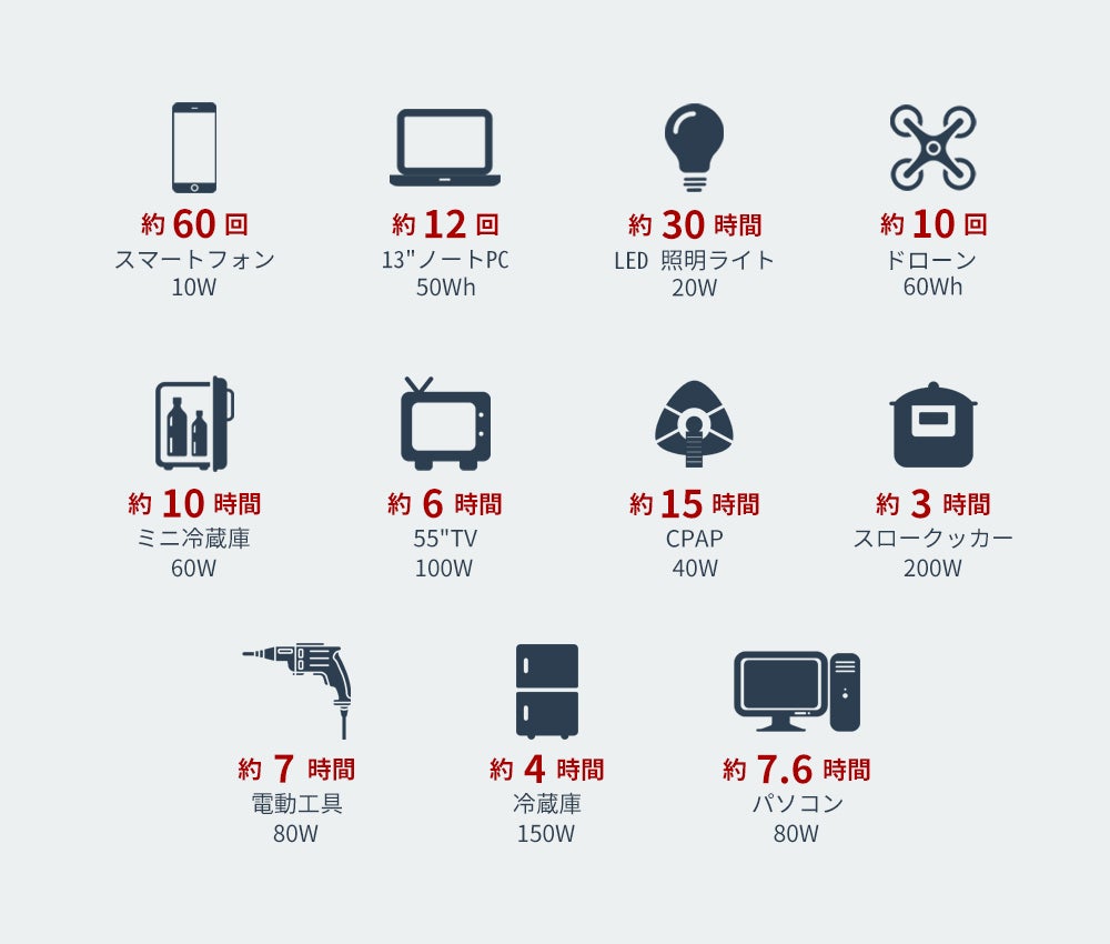 *AC充電とソーラーパネル充電を併用可能ですので、その場合、完全充電の時間が更に短くなります。
