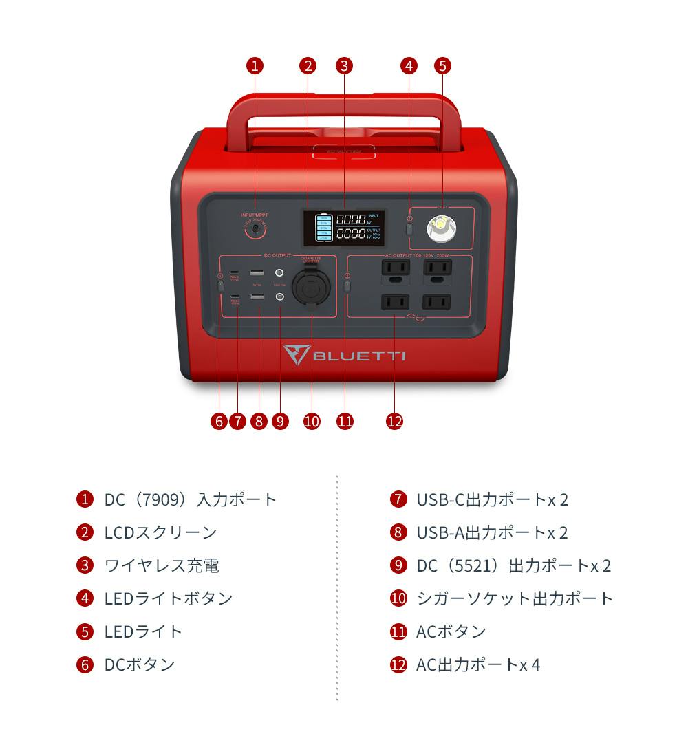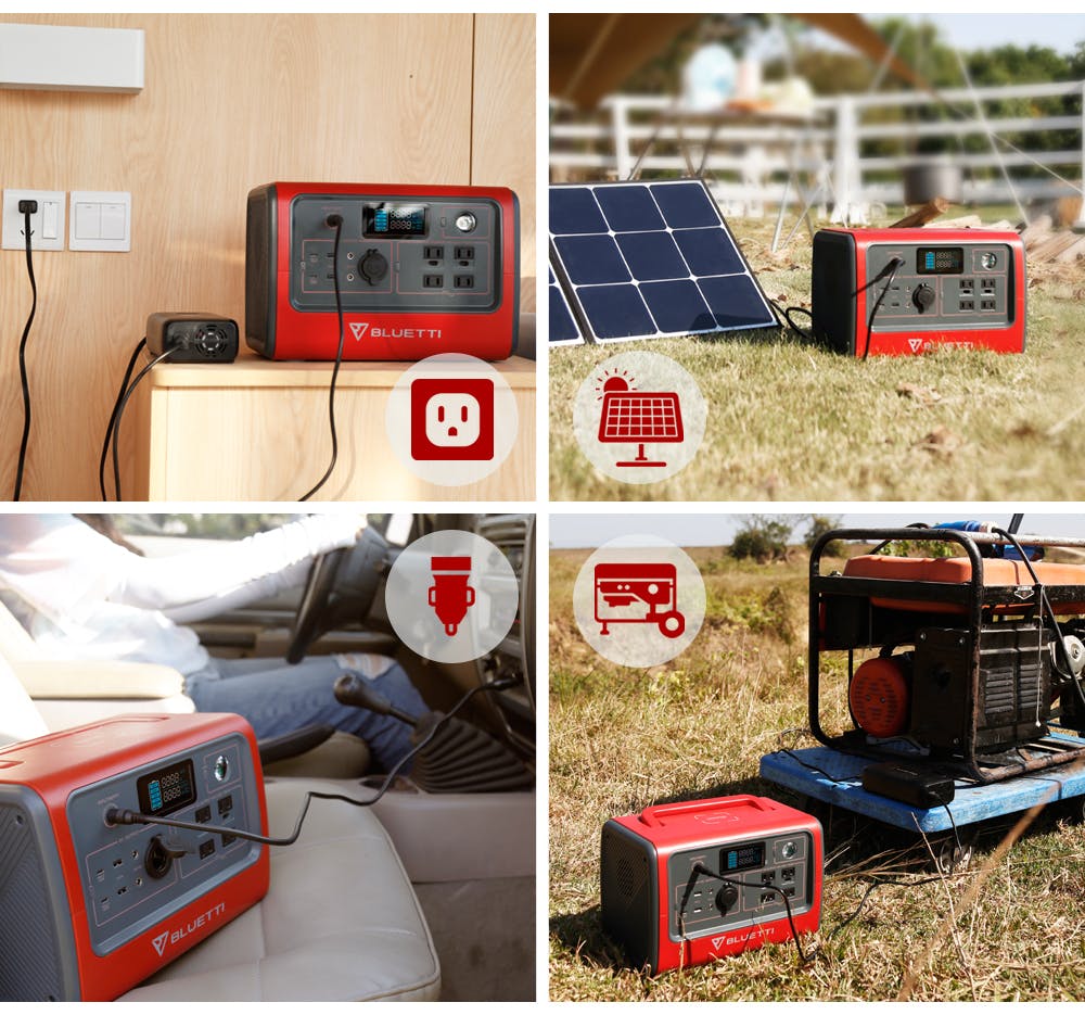3. 充電形式は5つあります。(AC充電、カー充電、ソーラーパネル充電、発電機充電、鉛酸蓄電池充電)その中に、ソーラーパネル充電は700Wまで対応しますので、MPPTコントローラの力を加えて、最短3.5時間で満タンになれます。