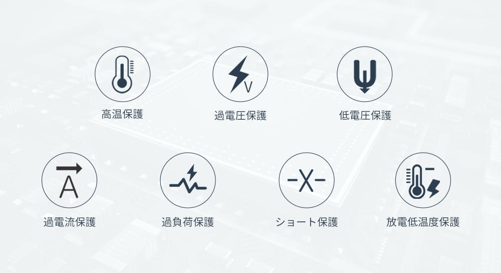 BLUETTIは常に世界トップクラスの安全性を目指して製品開発を行っています。ポータブル電源に内蔵しているバッテリーの状態を制御するBMS(バッテリーマネージメントシステム)をはじめ、インバータ回路、充電システムなど、主要部のすべてを独自のノウハウと安全思想に基づいて開発を行っており、他社の追随を許しません。