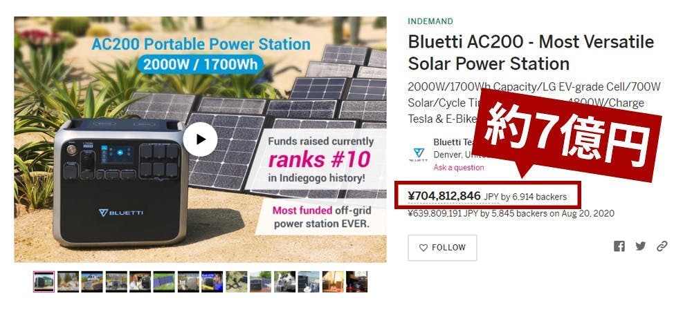 2021/02/01 18:54サポーターの皆様【BLUETTI EB70】プロジェクト運営チームです。いつもお世話になっております。 この度は、小型ポータブル電源【BLUETTI EB70】のプロジェクトにご支援、ご関心いただき誠にありがとうございます。 クラウドファンディング「スマートなのにパワフル。最高水準の安全性をもつ新世代ポータブル電源」は、2020年12月9日にスタートし、1月29日をもちまして募集を終了いたしました。この間に1048名の方から77,552,189円のご支援を頂きましたこと、BLUETTIスタッフ一同心より感謝申し上げます。 昨今、私達を取り巻く社会は新型コロナの影響もあり、これまで当たり前だと思っていた平穏な生活が、少しずつ脅かされて安穏としていられない状況が続いています。 BLUETTIはポータブル電源を通して、皆様の暮らしに安心・安全を提供し、楽しく豊かな生活を送れますよう、少しでもお役に立ちたいと願っております。 2月中には、ご支援頂いた皆様のお手元に、リターンの製品をお届けできる予定です。ぜひ皆様の生活の中で有効にご活用いただき、ご愛顧頂けると幸いです。 もっと見る