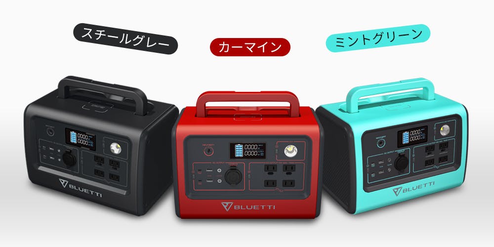 スチールグレー、カーマイン、ミントグリーン、3つの色がある「BLUETTI EB70」はパワフルな電源としてだけでなく、おしゃれなインテリアとしても楽しめます。EB70は持ち手付きですので、アウトドアや避難する時、とても運びやすい構造です。一方、EB70を保管するときには、持ち手が本体にぴったり収まるので、収納にも便利です。