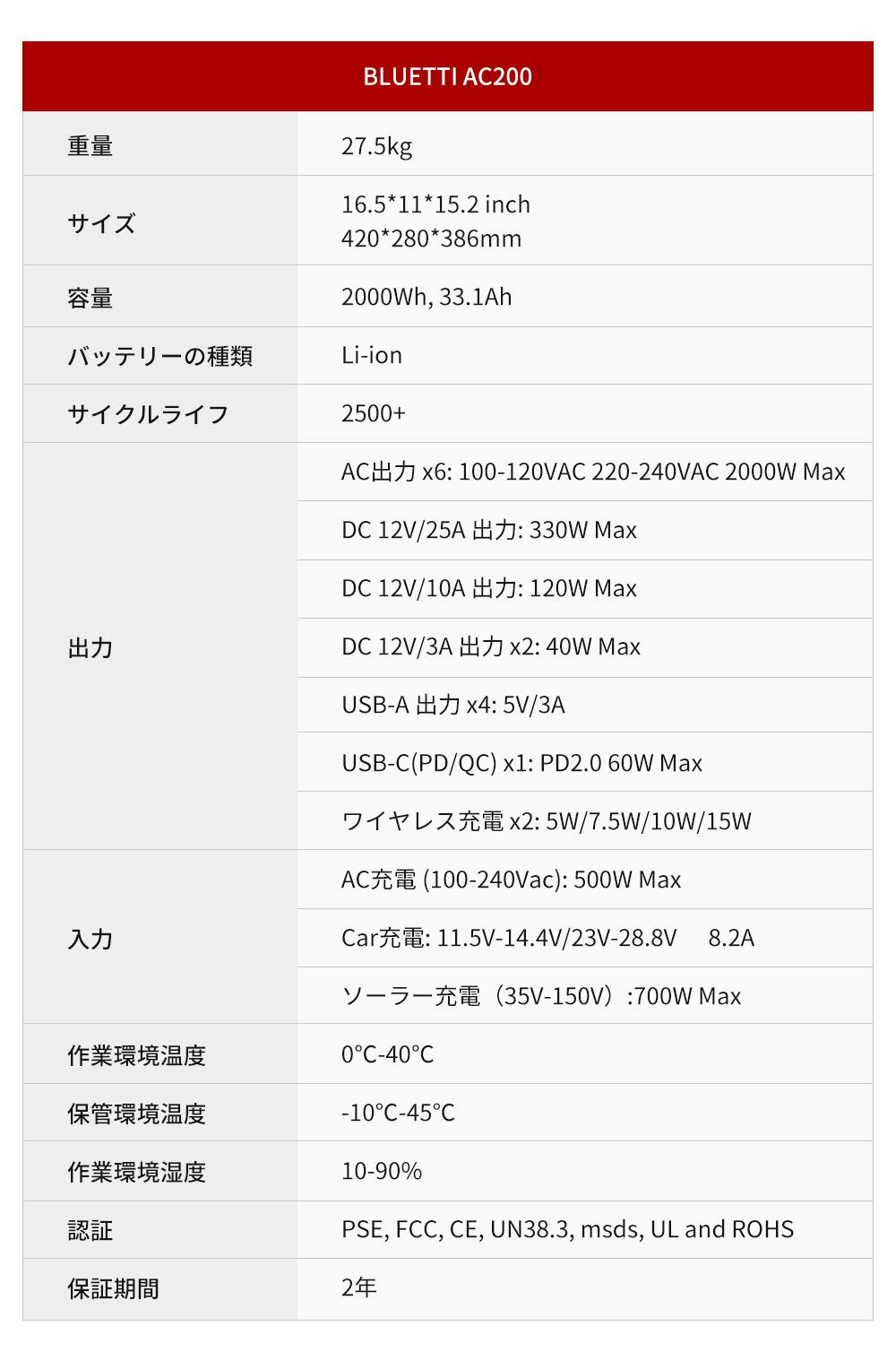 4.AC200本体には、高温保護、過電圧保護、低電圧保護、放電低温度保護、過電流保護、過負荷保護、ショート保護、充電過電圧保護などの設定を施し、皆さまに安心してお使い頂けるよう最善を尽くしております。