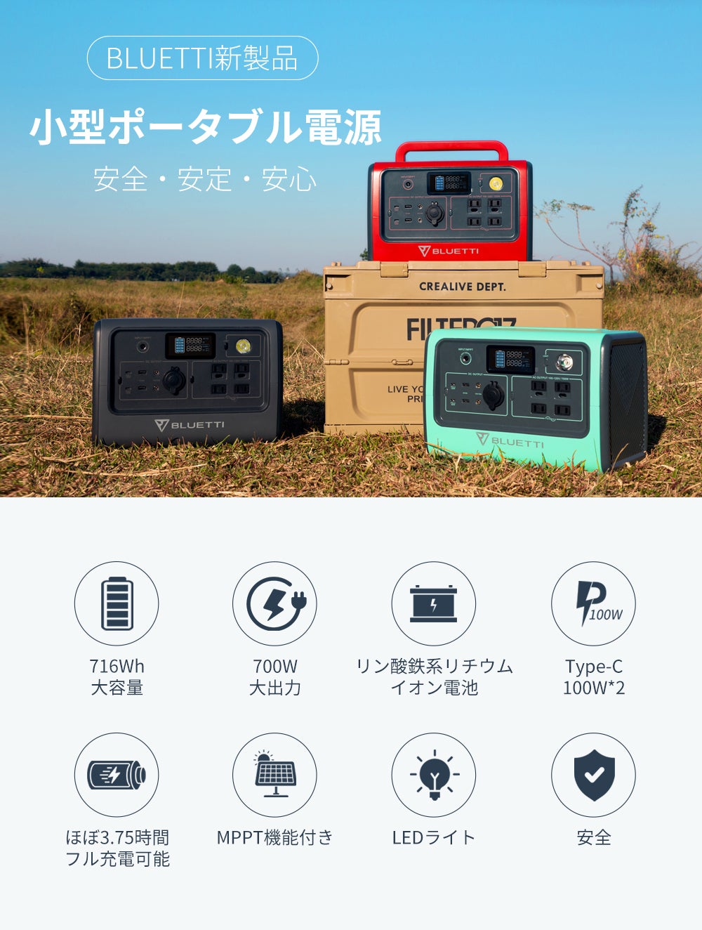ポータブル電源に求められる要素は、高性能や多機能といったことばかりではありません。もっとも重要な要素は「安心して使える安全性と信頼性」であるのは言うまでもありません。