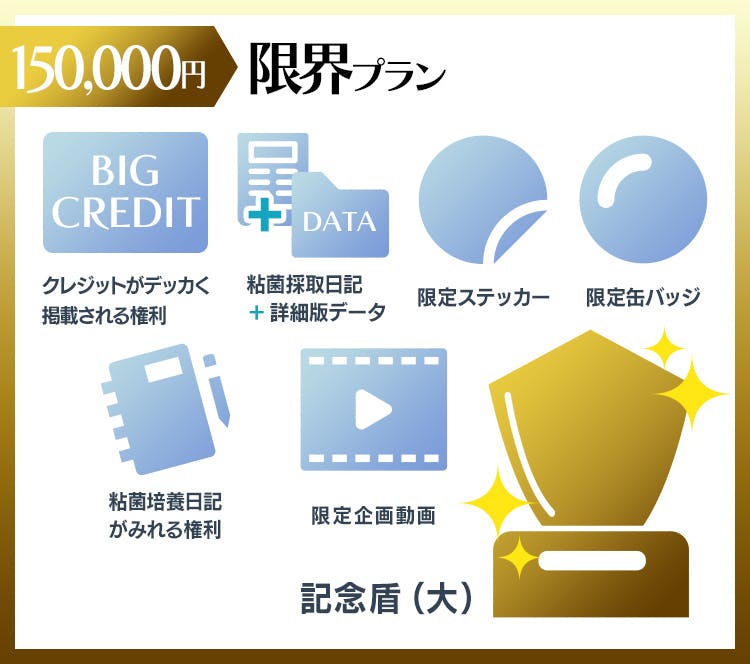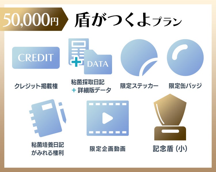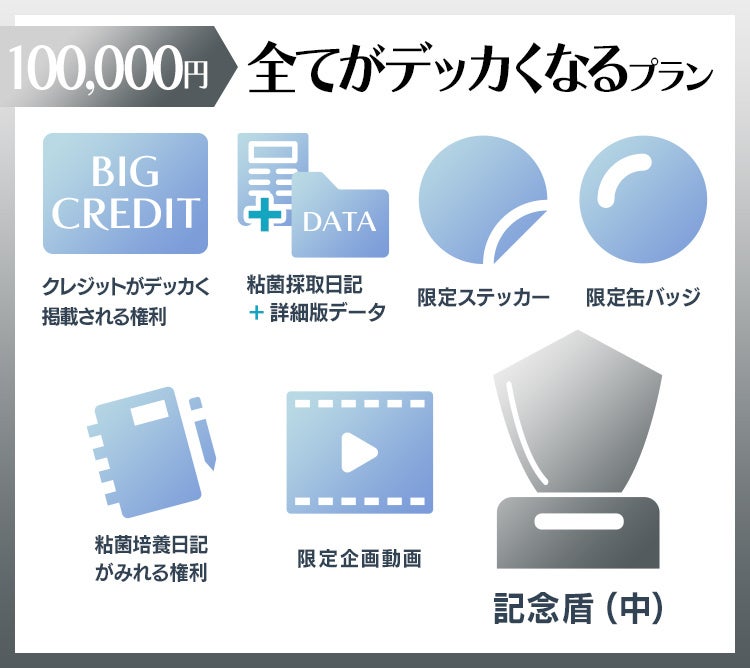 また、こちらで採取した粘菌の培養記録は4,000円〜プランから、採取風景や展示までの道のりをまとめる予定の限定企画動画は10,000円〜プランから公開を行います。