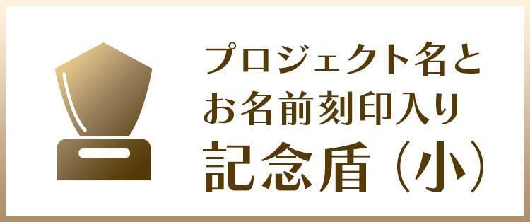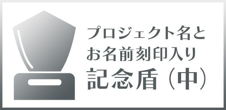 小さいサイズの記念盾です。本プロジェクト名とお名前(本名、ペンネームどちらでも可)を刻印し、郵送にてお送りいたします。