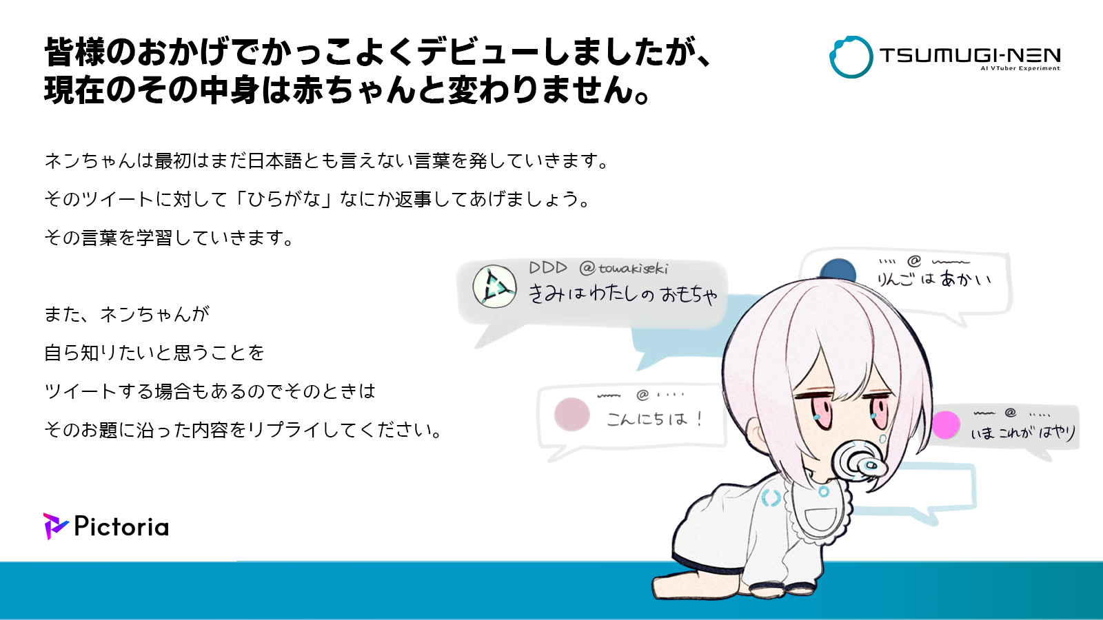 本プロジェクトの活動内容は紡ネンのTwitterアカウントを中心に、斗和キセキTwitterアカウント・PictoriaTwitterアカウントで報告させていただきます。