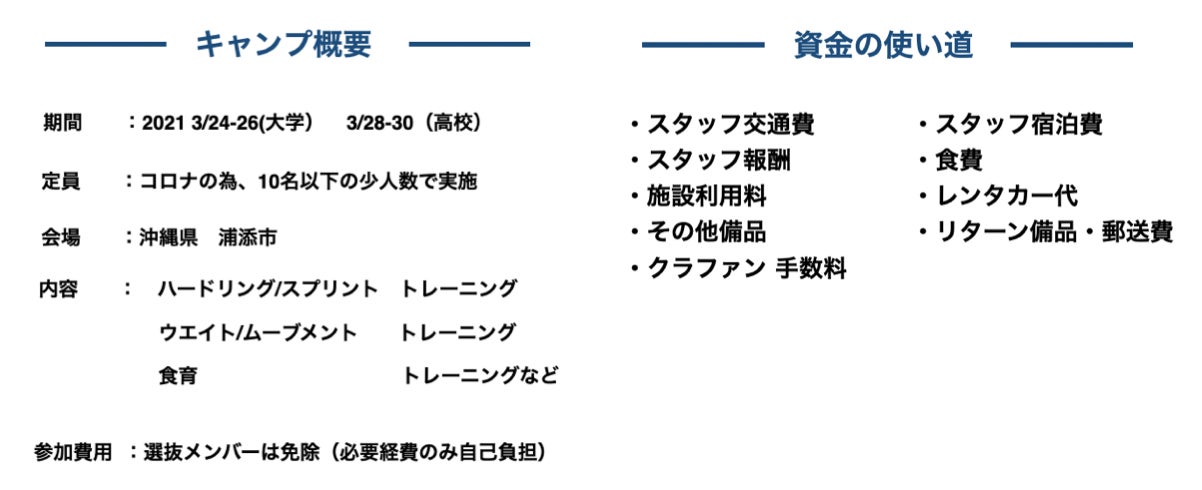 そこで、今の自分に何ができるのか?を考えた所、コロナ禍で大会が中止・練習も満足にできない学生達に向けて、“トップレベルを肌で感じることができる環境”を提供したいと考えました。