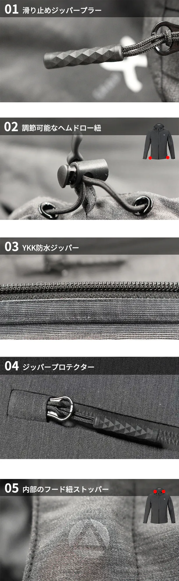 グラフェン層により、防水性、軽量性、透湿性、耐久性などを備えたスタイリッシュなデザインとなっております。