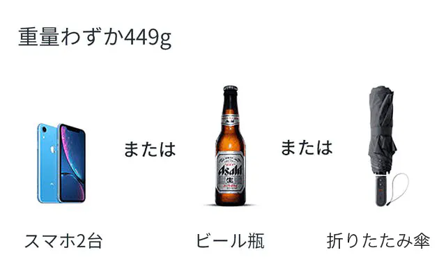 Graphene-Xの耐水圧10,000mm(14.2psi)です。通常の雨は約2psi、台風の雨は約10psiですので、大雨に遭遇しても安心です。