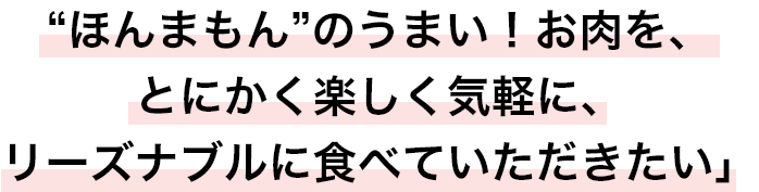 ここには必ず、元気、笑顔、活力、そして…心もほろっと解れる、“圧倒的に”うまい肉(=ほんまもん)があります。