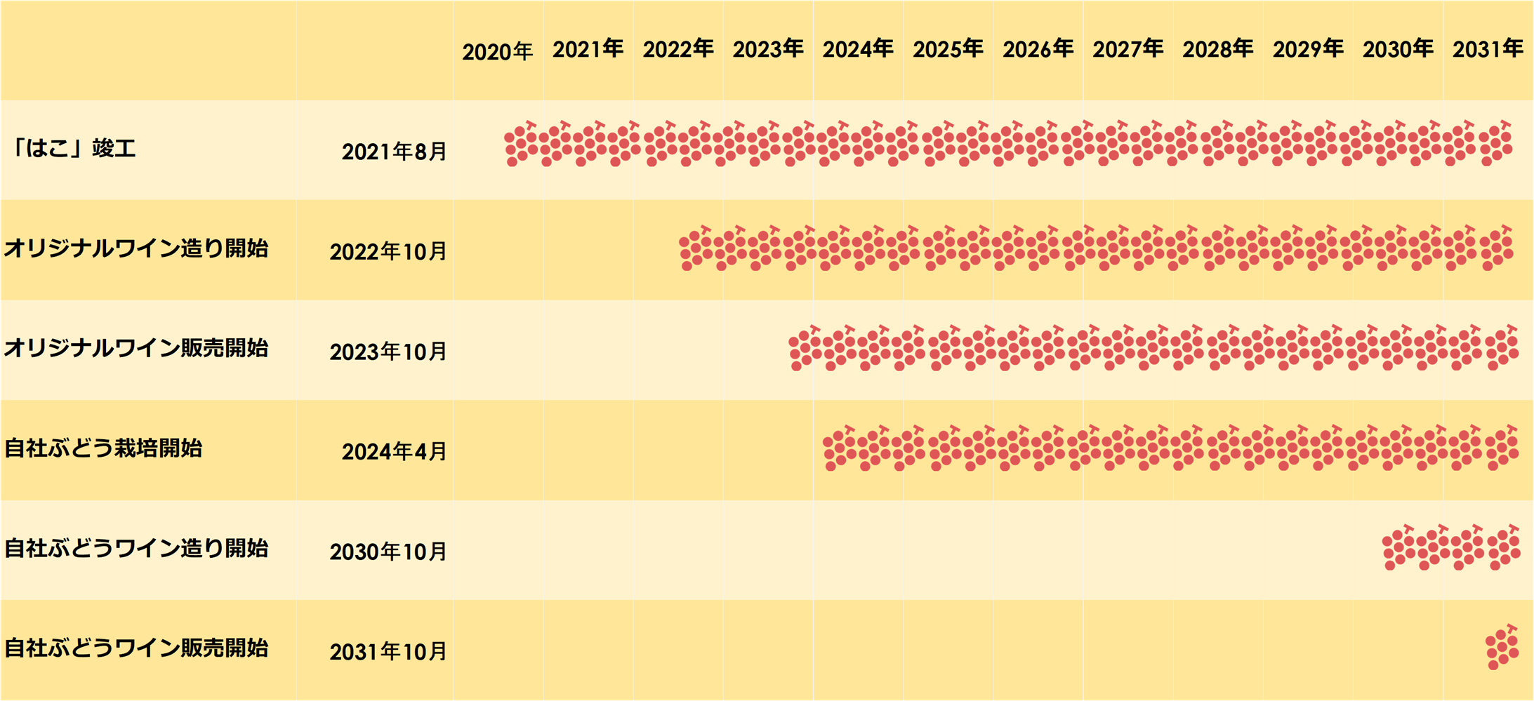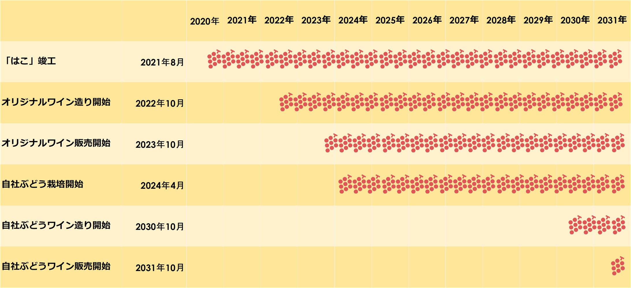 2031年10月:自社ぶどうワイン販売開始