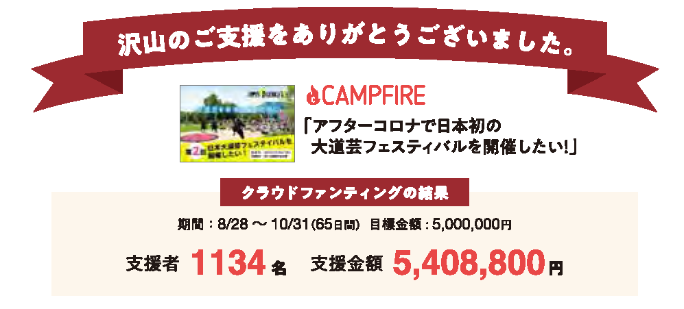 第2回日本大道芸フェスティバルのクラウドファンディング終了いたしました。