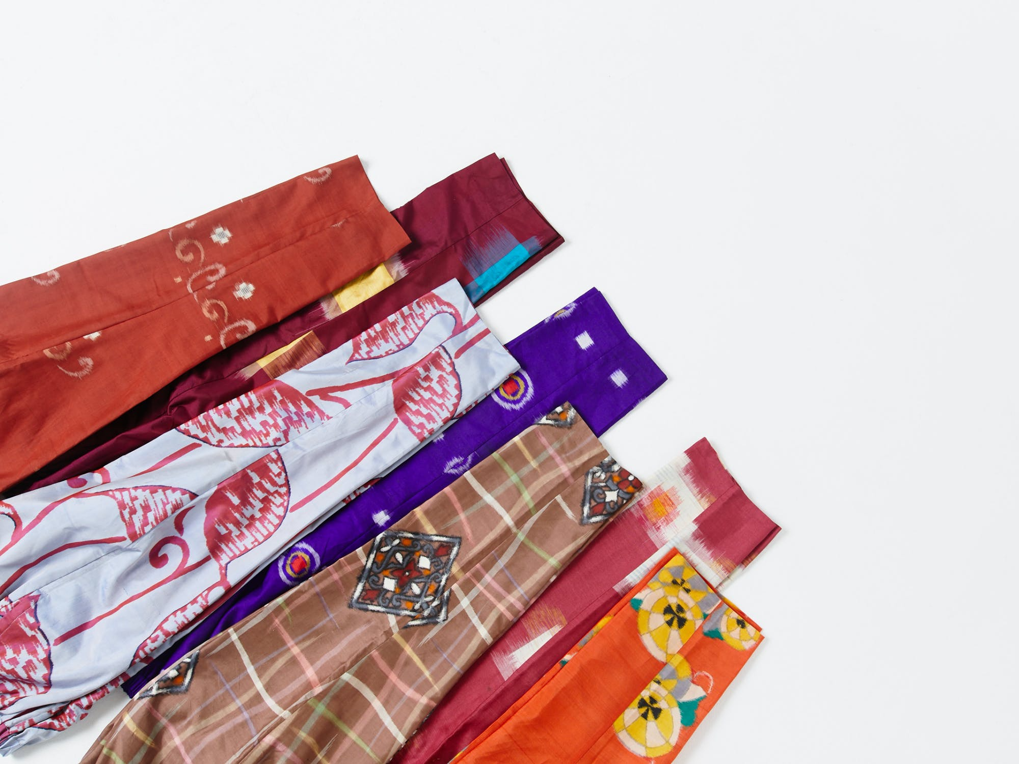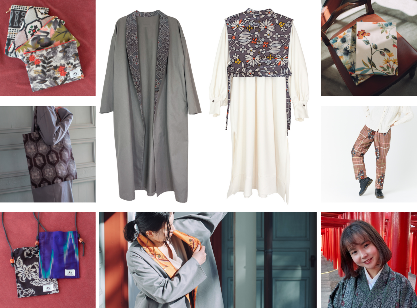 アップサイクルを通して銘仙が服や小物、アートに生まれ変わります。