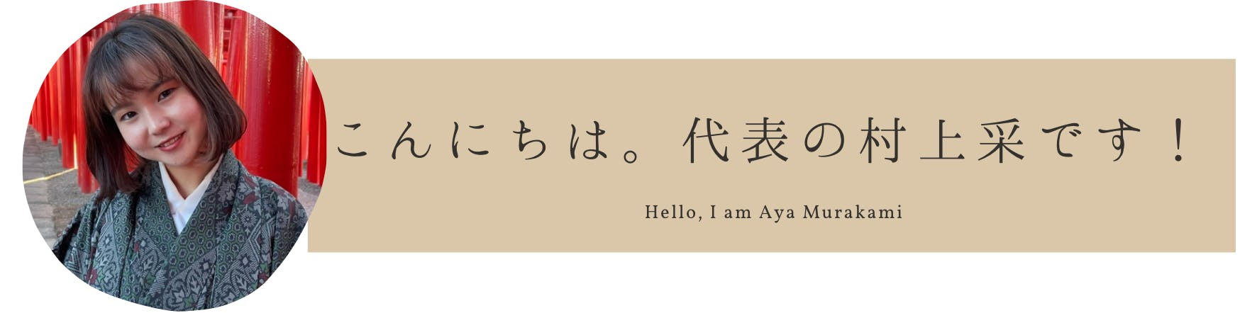 カルチャーブランドAy代表の村上采です。このページをご覧いただきまして、ありがとうございます。とても嬉しいです!