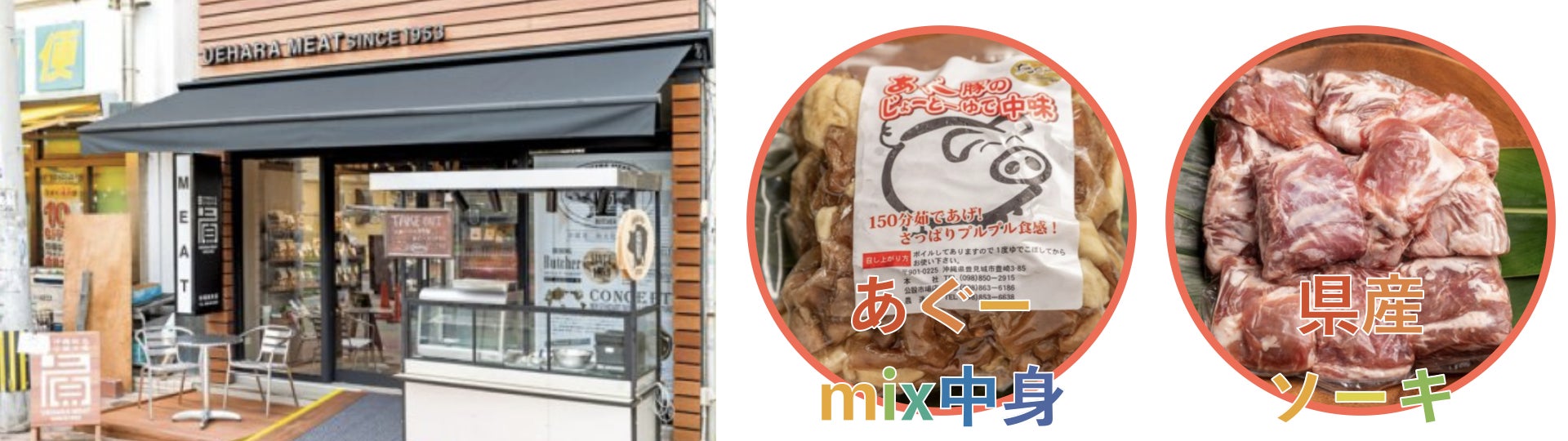 昭和28年開業の超老舗。新鮮で上質な精肉や「沖縄牧志上原ミート」ブランドなどを取り扱う。