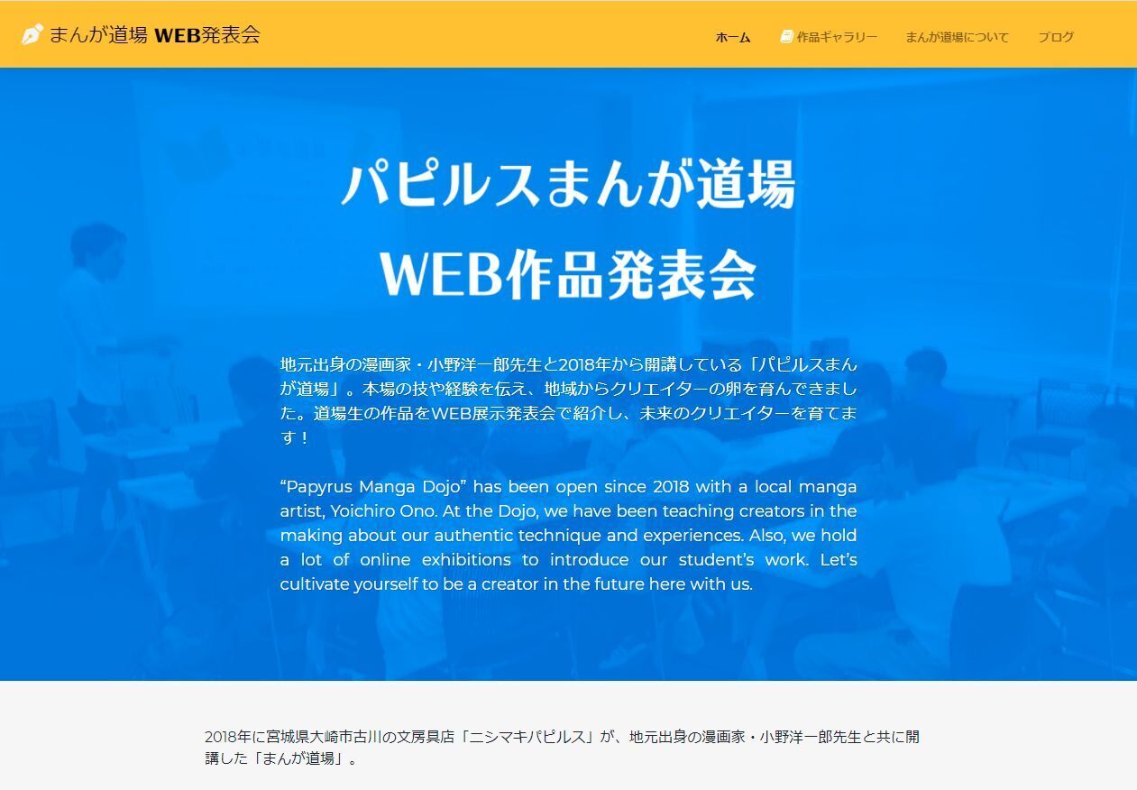 2018年に宮城県大崎市古川の文房具店「ニシマキパピルス」が、地元出身の漫画家・小野洋一郎先生と共に開講した「まんが道場」。冒頭の声は、その展示発表展に集まった感想の一部です。開講から3年目の2020年、受講生のレベルも向上し、次の作品発表の機会に向けて制作活動を行なっていました。しかし、新型コロナウイルスの感染拡大によって、制作した作品が日の目を見ないまま眠ってしまっている状況になります。