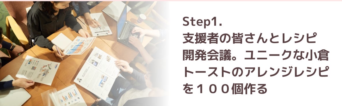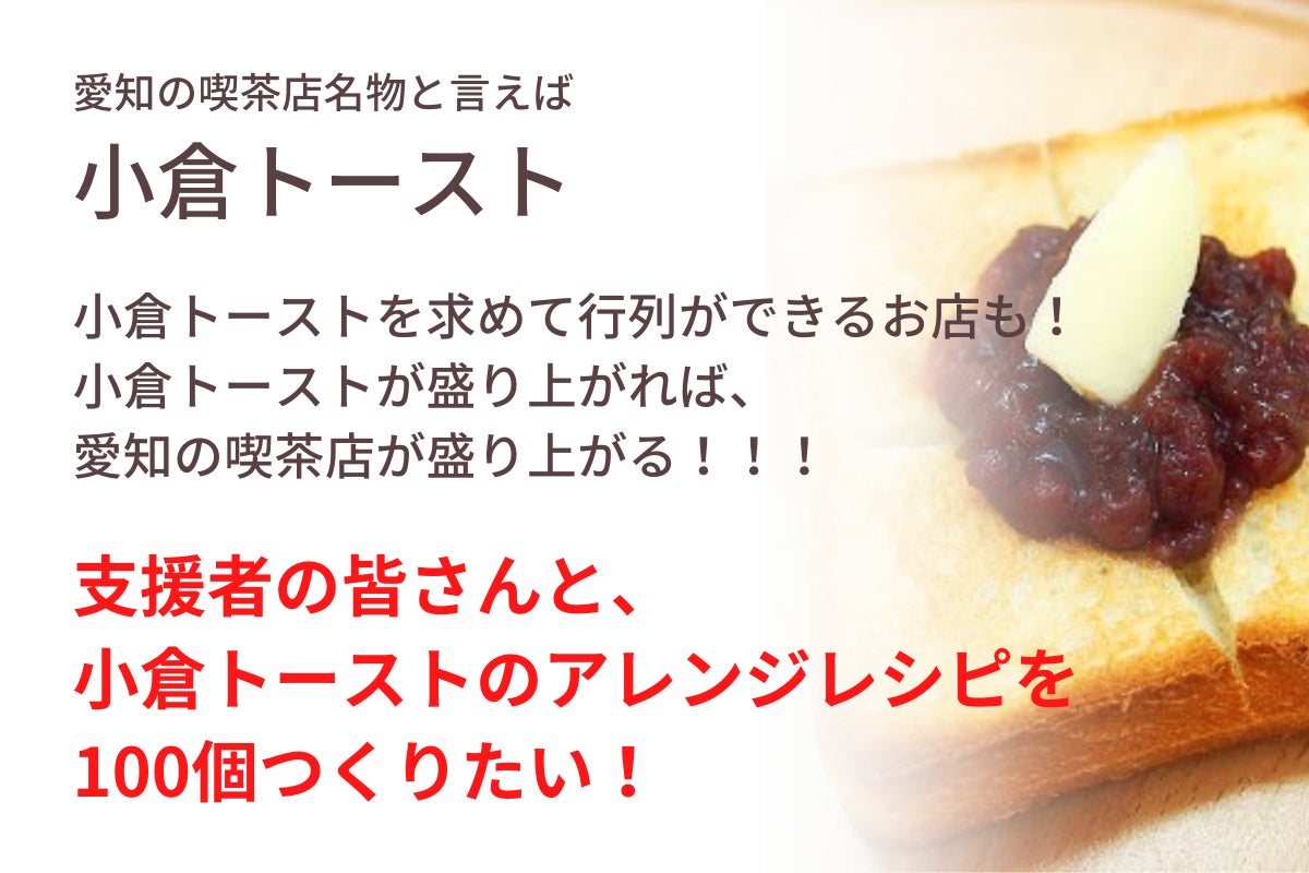 支援者の皆さんと一緒に、そんなユニークで新しい概念の小倉トーストのアレンジレシピを、100通りつくりたいと思います。