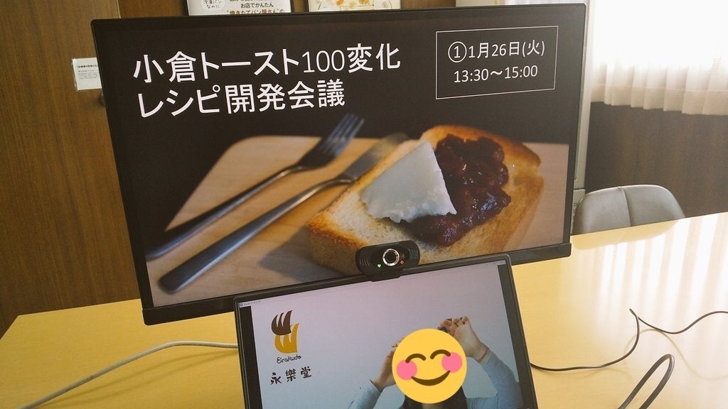 支援者の皆さんとオンライン会議を行い、小倉トースト100変化のレシピアイデアを出し合います。