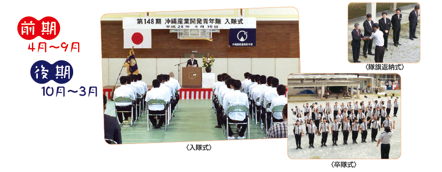 沖縄県東村にある☞沖縄産業開発青年隊では、約半年間の訓練で、建設作業や農作業に必要な技能・技術訓練(実習)を行っています。三食付きの寄宿舎で共同生活を通した規律訓練等により協調性・柔軟性を養い、地域社会に貢献できる人材を創出しています。ここでは、保護観察中の青少年も受け入れ、ほかの隊員と同じく共に訓練を重ね、立派に卒隊し、就職していきます。
