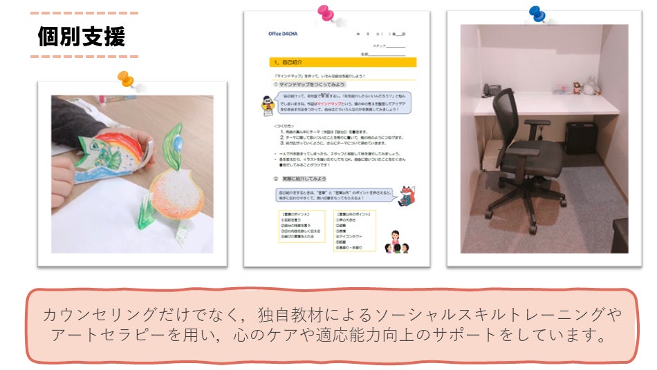 ・・・不登校の中高生を対象に,アートセラピーやソーシャルスキルトレーニングなどの,一人一人の状態や目標に合わせた1対1の支援を行ってきました。