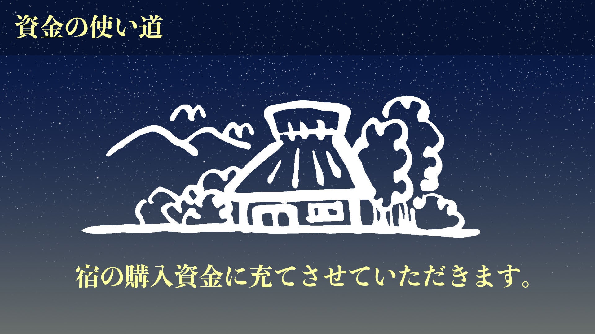 みなさまからご支援いただいたお金は、宿となる建物の購入資金に充てさせていただきます。