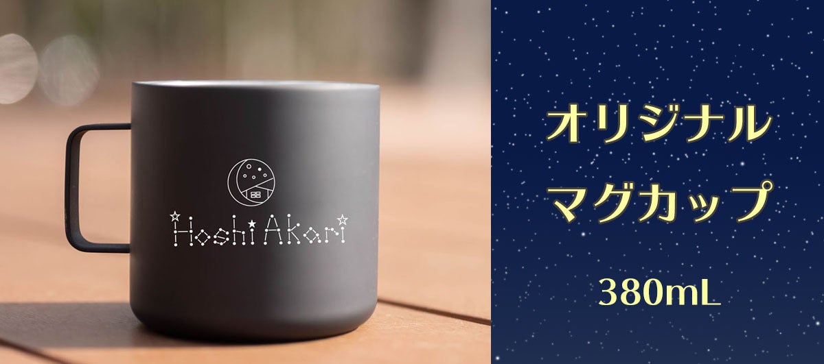 宿のロゴ入りのステンレスマグカップです。保温性バッチリで飲み物の温度を保ってくれます。寒い冬に星空を眺めながら、温かい飲み物を飲むと幸せな気持ちになれます!(容量:380mL)