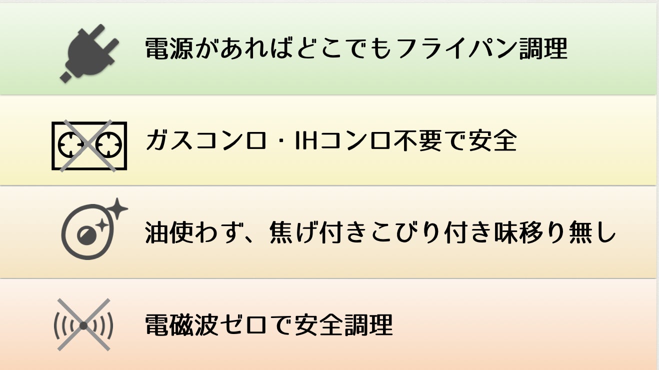 またIH対応金属のフライパンを使用するため重く、フライパンも限定的になります。