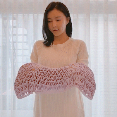 最終的に高さ調節ができるよう3Dエアメッシュを3段に製作し、プロトタイプができあがりました。テスターからのフィードバックを総合的に検討したところ、TPEの柔らかさとしなやかさが、エアメッシュにより相殺されてしまうという意見が多かったため再度第2の素材を見直すことに。