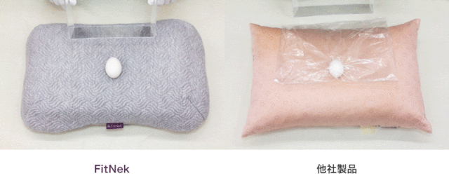 実際に生卵を押し付けた実験では、Fit Nekの枕は卵が割れず衝撃を上手に吸収しているのがわかります。