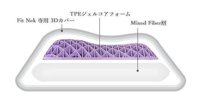 A. プルンプルンのTPEコア、独自配合のMixed Fiber層、Fit Nek専用の3Dカバーで構成された、まったく新しい設計の枕です。前述の通り、「理想の枕5つの条件」を満たしています。