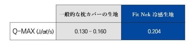 Q-MAX値(最大熱吸収速度)とは、熱の移動を利用してひんやりさせる接触冷感素材のひんやり度のひとつの指標となります。 数値が高ければ高いほどひんやり度が高いのですが、0.2以上で初めて「接触冷感素材」と呼ぶことが可能です。