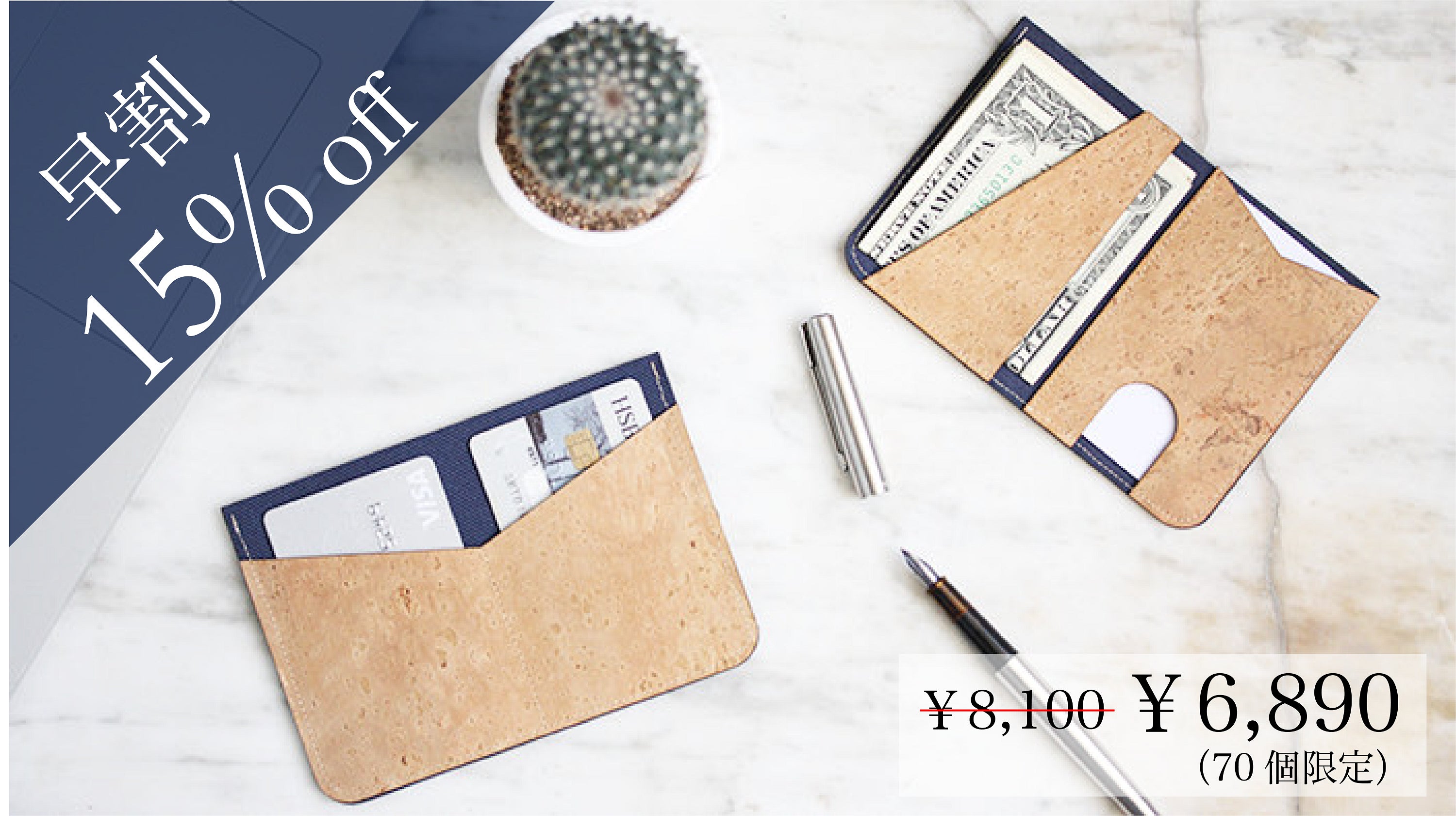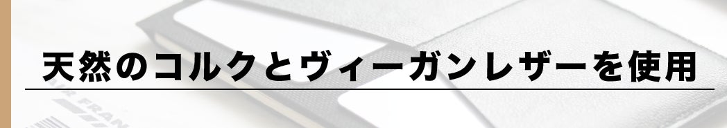 環境汚染・動物愛護などの着点からも注目されている「天然コルク」と「ヴィーガンレザー」を使用しており、ポリシーだけではなく「丈夫で軽く水に強い」その特徴から財布の素材にはとても適しています。